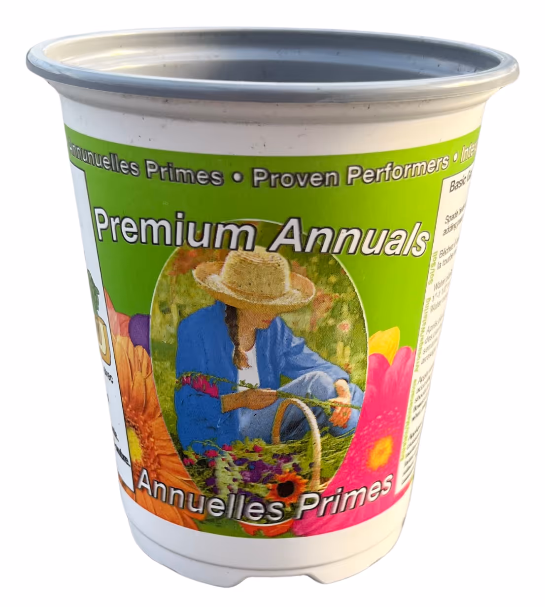 Our fruit plants and annual plants come in printed pots to help sell the product for you.